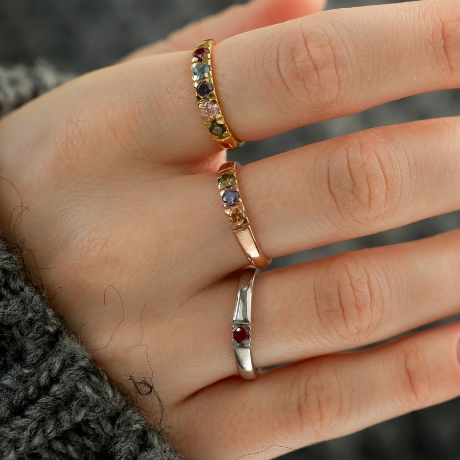 Birthstone Ring • Custom Gemstone Ring • Kids Birthstone Ring • Round-Cut Bezel Ring • Sterling Silver Ring • Sisters Ring • Gift Ring