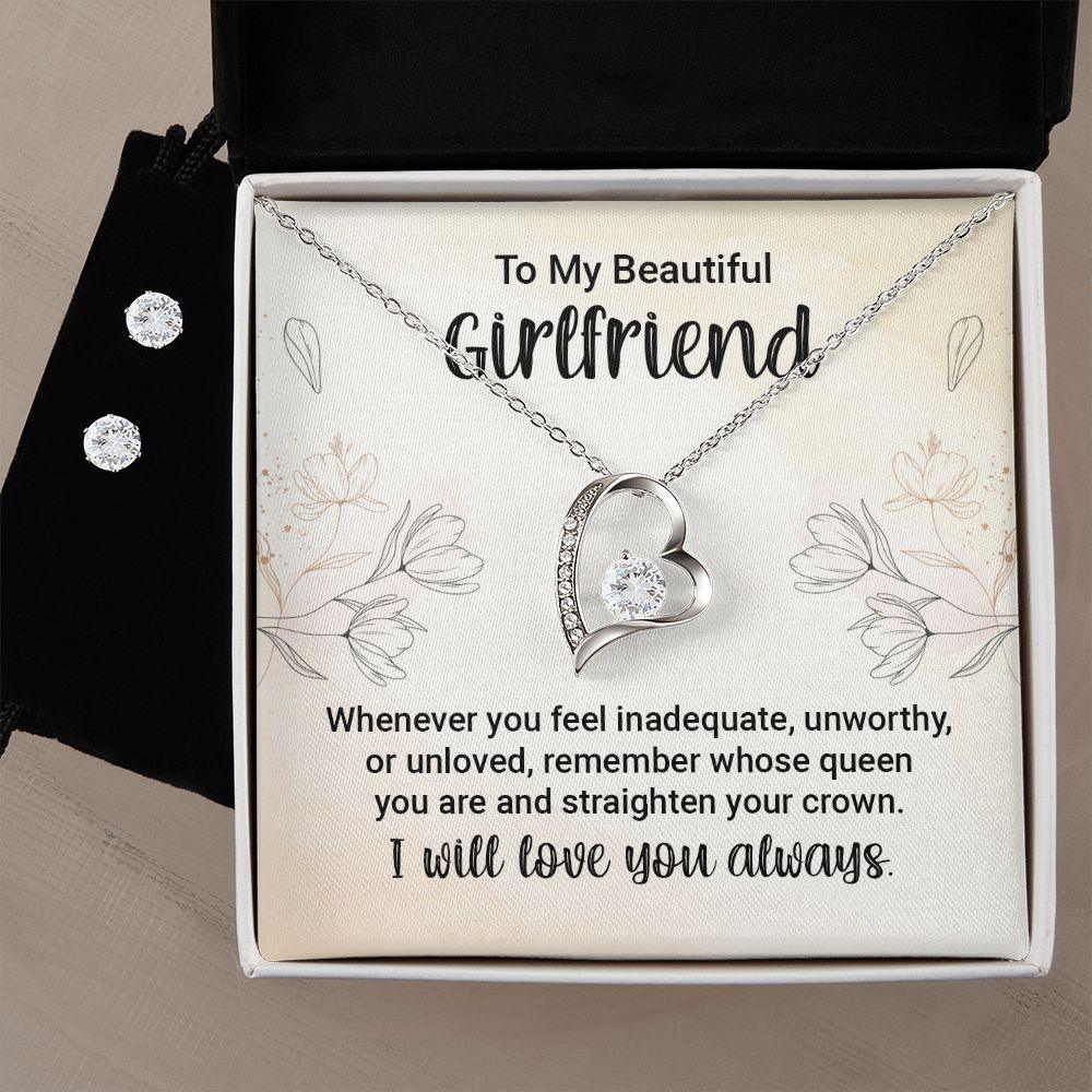 To My Girlfriend Forever Love Heart Pendant Necklace and Earring Set
